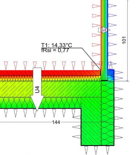 Ziel der Planung ist, möglichst viel Wärmebrücken energetisch zu optimieren, damit der psi- Wert möglichst niedrig wird und der frsi-Wert möglichst hoch wird.